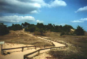 ![]() Auf den vegetationsfreien Hängen verlagern und verformen Südwestwinde ständig den Sand |